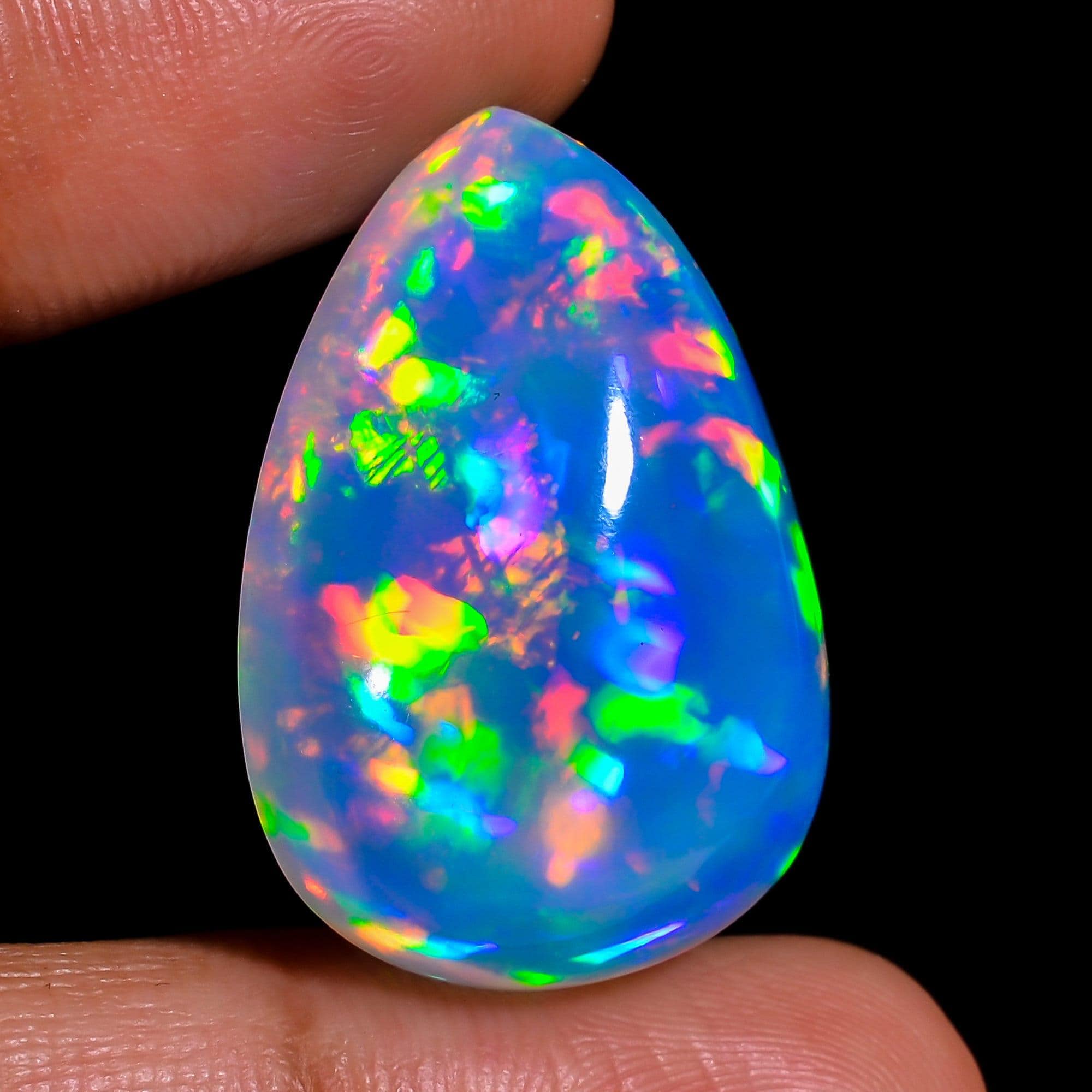 Discover a 28.50ct pear-shaped opal cabochon crafted from genuine Ethiopian crystal opal. This real opal gemstone offers a beautiful display of flashes and color play, making it a standout choice for your next jewelry opal project or to add to your gemstone opal collection. You’ll love the unique honeycomb pattern and captivating sparkle of this natural welo opal, known for its brilliance.