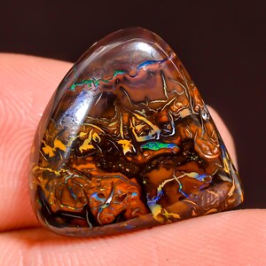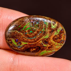 Each Australian Boulder Opal cabochon is a testament to artisanal craftsmanship, reflecting the authenticity and raw natural charm of Australian mineral landscapes. Ideal as a meaningful gift for jewelry lovers, collectors, or those who appreciate unique natural treasures. This gemstone is versatile, durable, and sure to be cherished whether worn or displayed, making it a treasured addition to any collection.