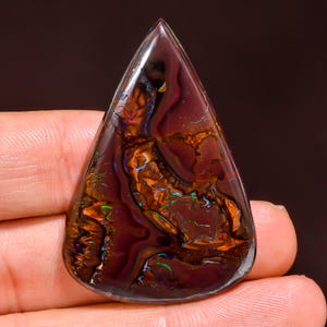 Each Australian Boulder Opal cabochon is a testament to artisanal craftsmanship, reflecting the authenticity and raw natural charm of Australian mineral landscapes. Ideal as a meaningful gift for jewelry lovers, collectors, or those who appreciate unique natural treasures. This gemstone is versatile, durable, and sure to be cherished whether worn or displayed, making it a treasured addition to any collection.