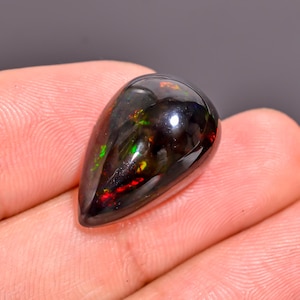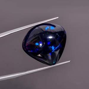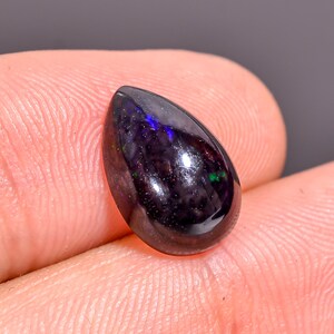 Discover the magic of opal with this stunning Ethiopian black opal cabochon. Each stone features unique blue and black tones with a multicolor play of light, making it a captivating choice for your next piece of opal jewelry.